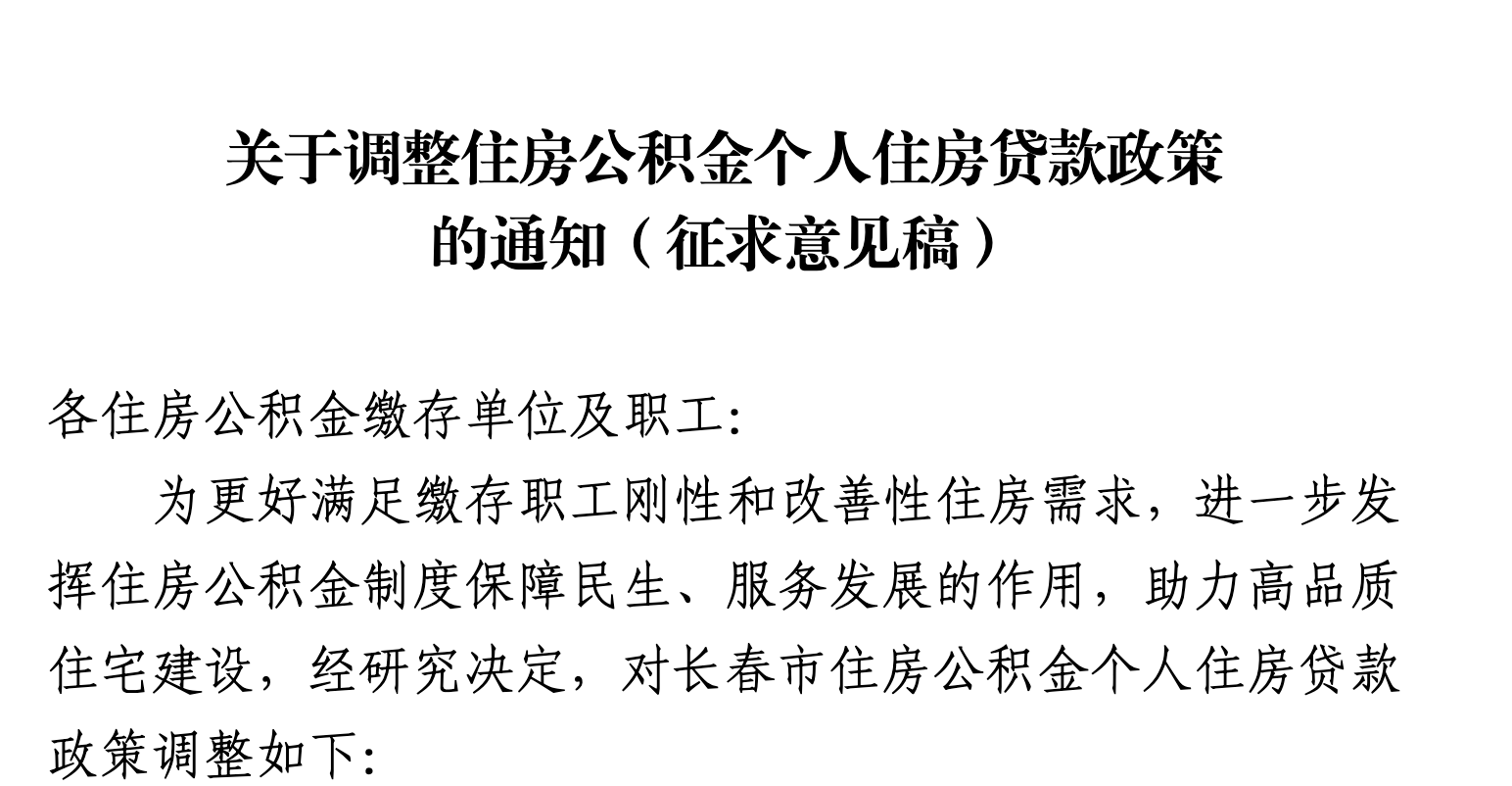 长春还调整住房公积金提取政策,诸如调整全款购房提取时限,取消异地购房提取对户籍(地域)的限制。